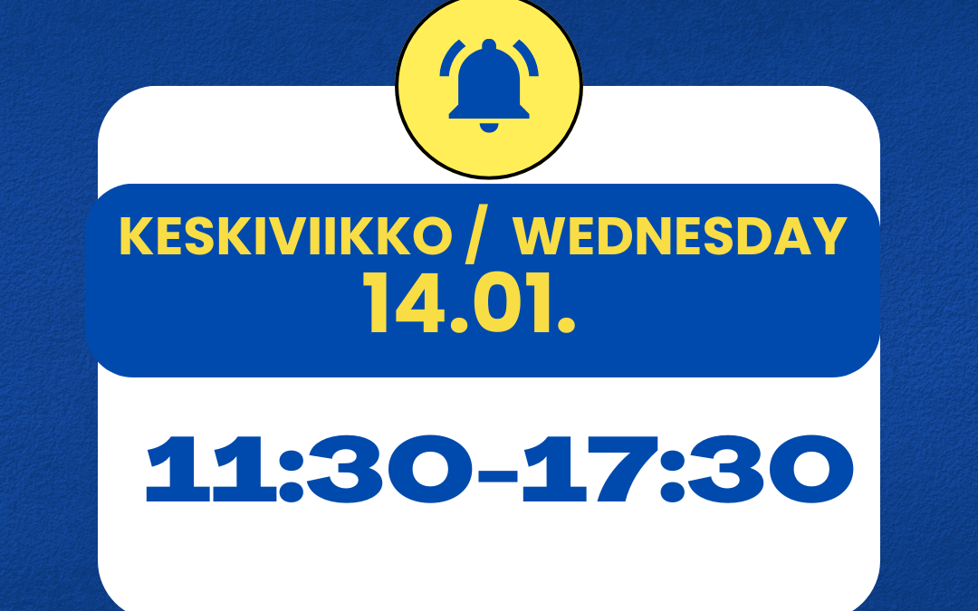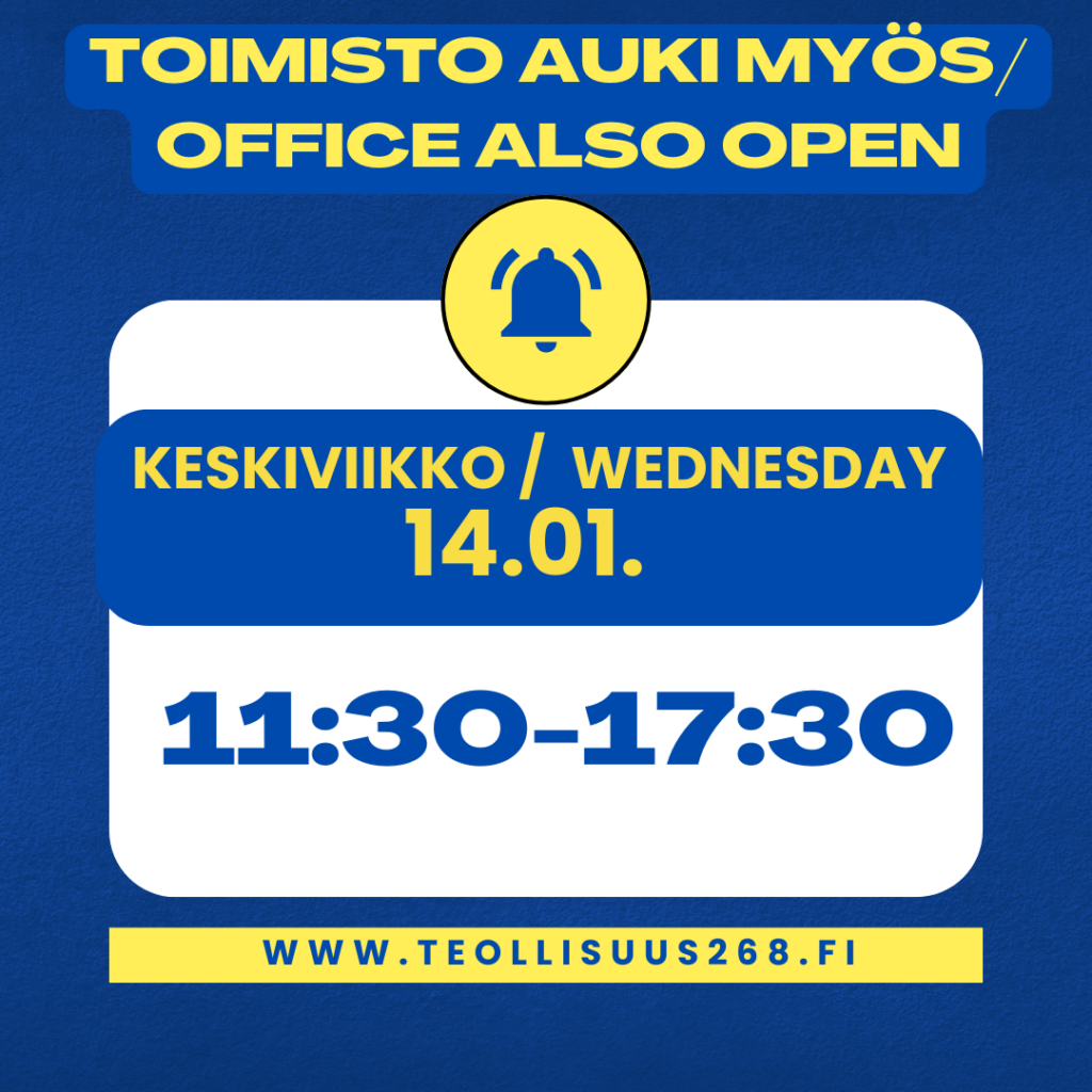 Toimisto auki myös ke 14.1. klo 11:30-17:30