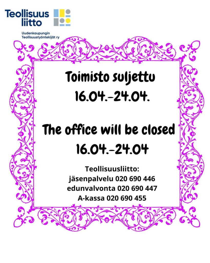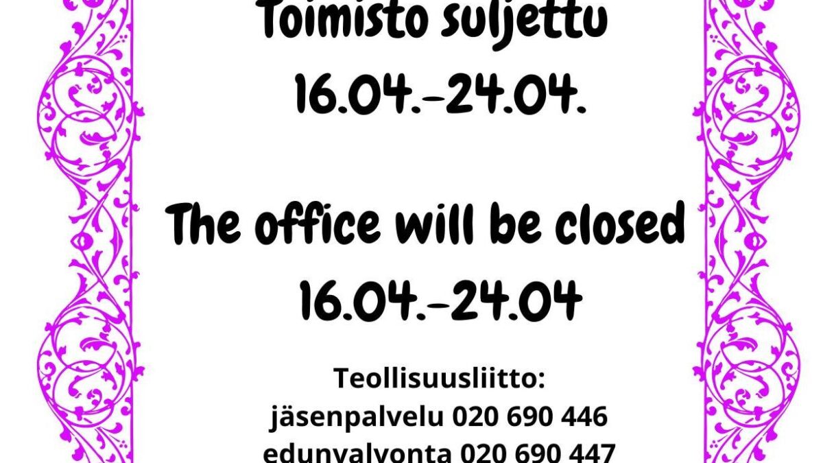 Toimisto suljettu 16.4. – 24.4.