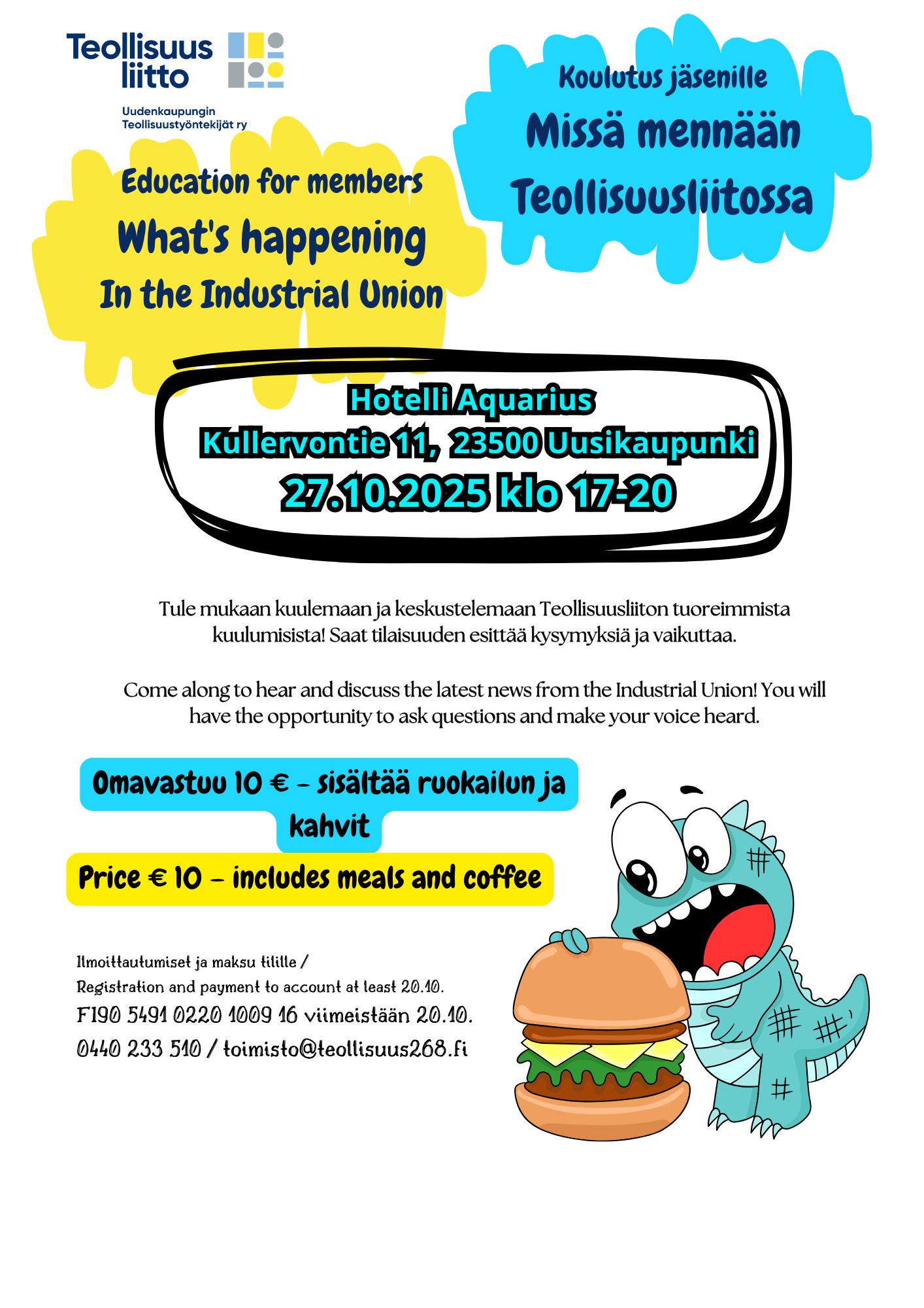 Tule mukaan kuulemaan ja keskustelemaan Teollisuusliiton tuoreimmista kuulumisista! Saat tilaisuuden esittää kysymyksiä ja vaikuttaa.