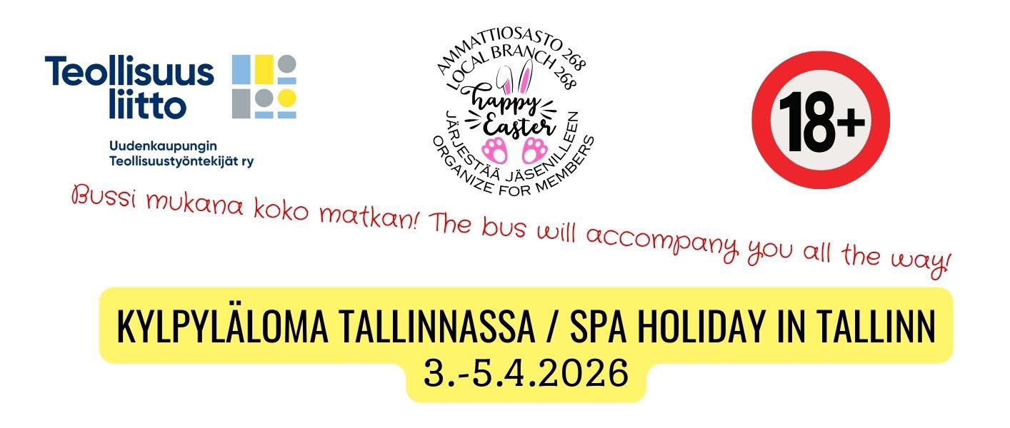 LÄHTÖ 03.04. UUSIKAUPUNKI KLO 10:45, PALUU 05.04 NOIN KLO 18:45